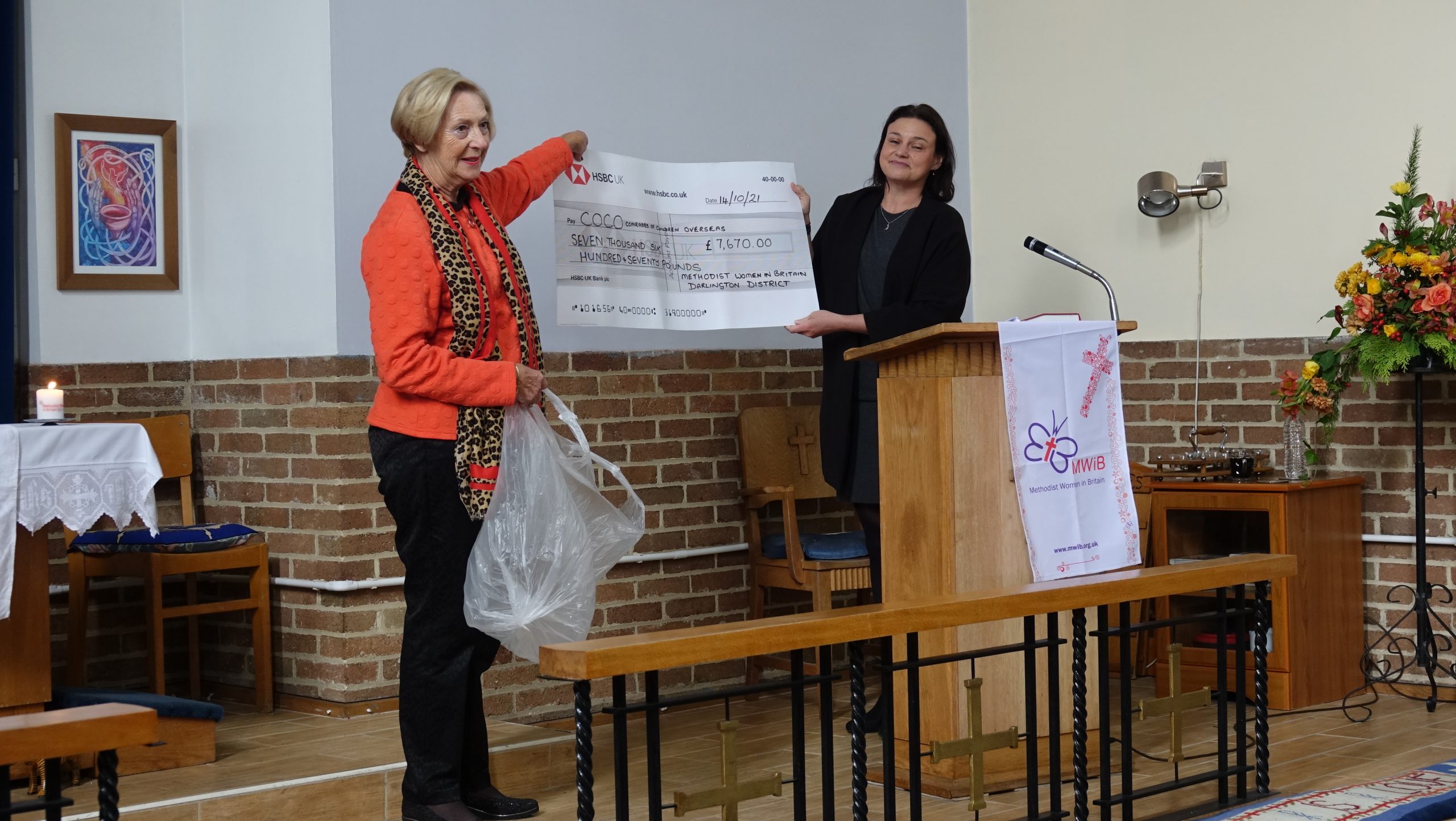 Methodist Women in Britain Presentation cheque to COCO